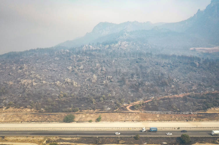 Geyve'nin Hacılar Mahallesi'ndeki ormanlık alanda 20 Temmuz'da çıkan, bir gün sonra Osmaneli sınırlarına sıçrayan ve söndürme çalışmaları devam eden yangın nedeniyle oluşan yoğun duman, Bursa kent merkezini kapladı.