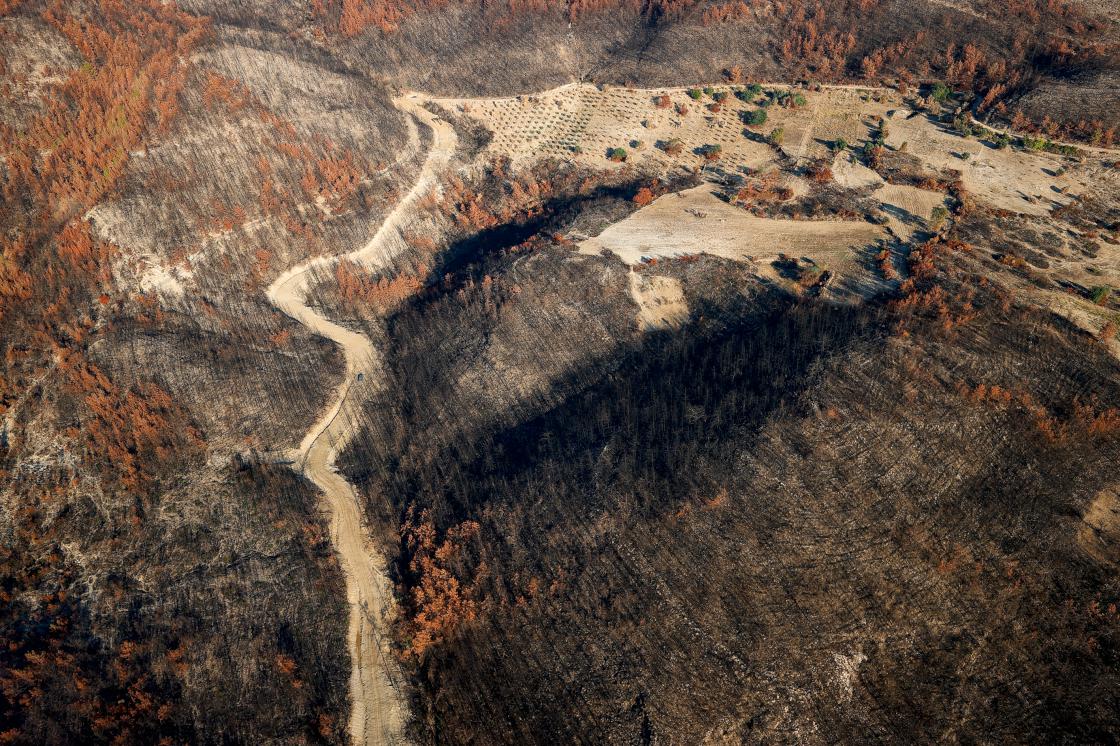 Yangın boyunca sahada olan ve yaşananları haber, fotoğraf ve görüntülerle gözler önüne seren AA ekibi, yanan alanlarda yapılan çalışmaları da helikopterle havadan görüntüledi.