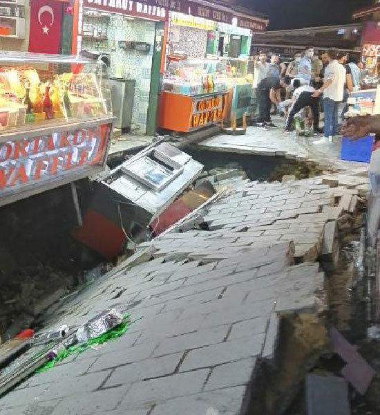 Ortaköy'de bulunan ve Kumpirciler Çarşısı olarak bilinen Mecidiye Köprüsü Sokak'ta saat 23.00 sıralarında büyük bir gürültüyle göçük meydana geldi. Olay sırasında kumpir almak isteyen bir kadın, iş yerinin malzemeleriyle birlikte oluşan çukura düştü. Haber verilmesi üzerine olay yerine polis, itfaiye ve sağlık ekipleri sevk edildi. Göçük sırasında bölgede bulunanlar tarafından çukurdan çıkarılan kadın, sağlık ekiplerine teslim edildi. İlk müdahalesi olay yerinde yapılan kadın, hastaneye kaldırıldı.