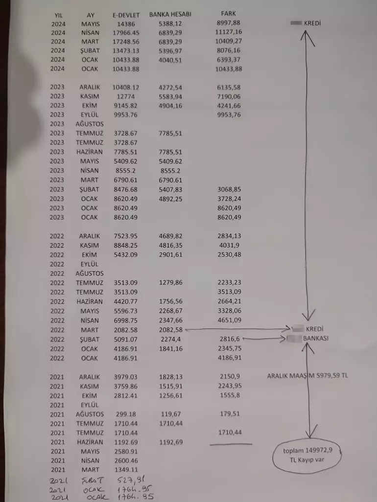 Bunun üzerine geriye dönük olarak hesaplarını kontrol eden öğretmenler yaklaşık 4 yıl boyunca bu durumun yaşandığını ve maaş bordrolarında yazılan ek ders ücret farkının farklı banka hesaplarına yatırıldığını gördü.
