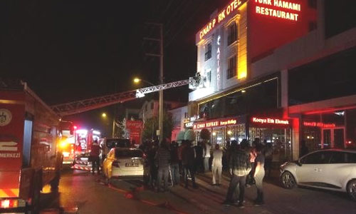 Olay saat 23.30 sıralarında, Körfez Cahit Zarifoğlu Caddesi üzerinde bulunan bir otelde meydana geldi. Otelin hamamında bilinmeyen bir nedenle çıkan yangında dumanlar bütün binayı kapladı. Otel çalışanlarının haber vermesi üzerine olay yerine polis, itfaiye ve 112 Acil ekipleri geldi. İtfaiye ekipleri yangına müdahale ederken, sağlık ekipleri de otelden çıkan ve nefes alma güçlüğü çekenlere müdahalede bulundu. Yangında aralarında otel sahibi Hamit Akıncı'nın da bulunduğu 10 kişi dumandan etkilendi. 10 kişi ambulanslarla çevredeki hastanelere kaldırıldı. Yangınla ilgili soruşturma başlatıldı.
