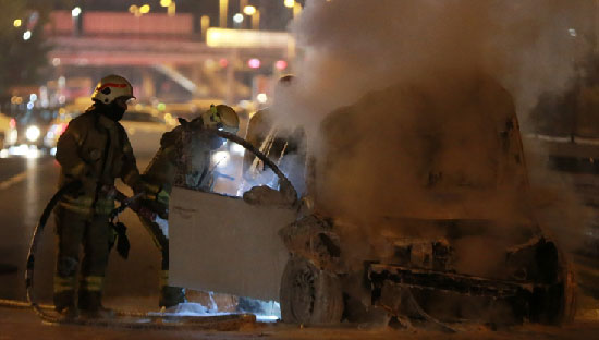 Kaza sonucu otomobilin motor kısmından alevler yükseldi. Kısa sürede otomobilin tamamını saran alevlere yoldan geçen diğer sürücüler müdahale etti. Kaza yerine gelen itfaiye ekibi yanan otomobile müdahale ederken, polis de yolu keserek araçları yan yola yönlendirdi. Yangın, itfaiye erlerinin çalışması sonucu söndürülürken otomobil tamamen kullanılmaz hale geldi. Yanan otomobil çekiciyle yoldan kaldırıldı. Otomobilin kaldırılması sonrası ulaşım normale döndü.