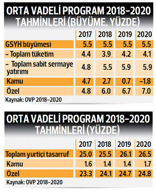 Hafta içinde açıklanan Orta Vadeli Program’ın (OVP) özü, “vatandaş ve şirketler (özel kesim) tasarruflarını artıracak, yatırım yapacak ve ekonomi üç yıl kesintisiz biçimde yüzde 5.5 büyüyecek” temennisidir.