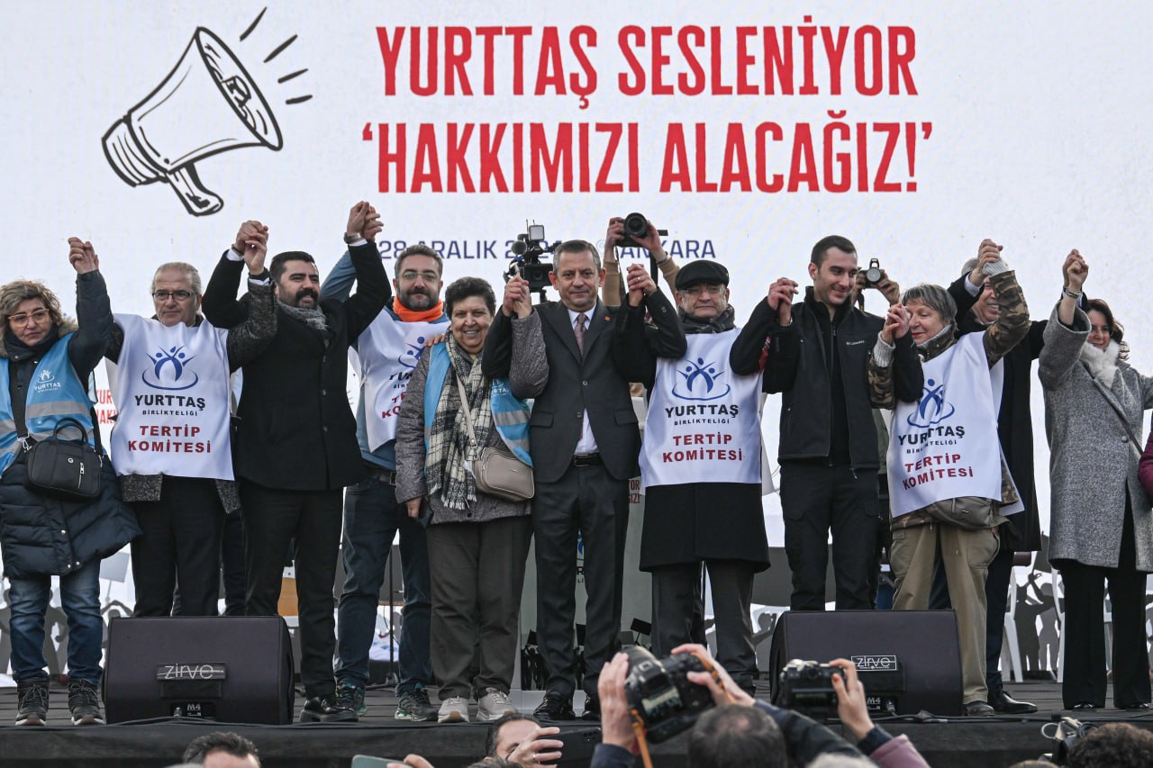 Türkiye'de 100 işçiden sadece 4,5 tanesinin grevli toplu iş sözleşmesi yapabildiğini belirten Özel, "İşçilere, sendikalara üye olmaları çağrısında bulunurken, sendikaları da üretimden gelen güçlerini kullanmaya, bu iktidara, bu yılı dar etmeye davet ediyorum." şeklinde konuştu.