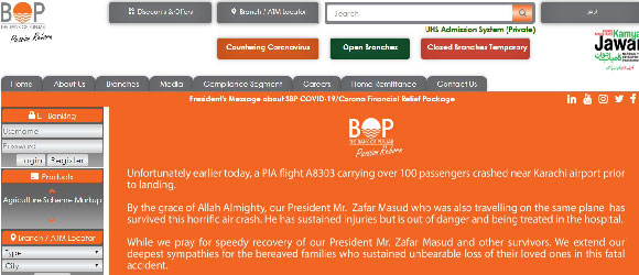 Panjub Bankası'nın resmi internet sitesinde Başkan Zafar Masud'un uçak