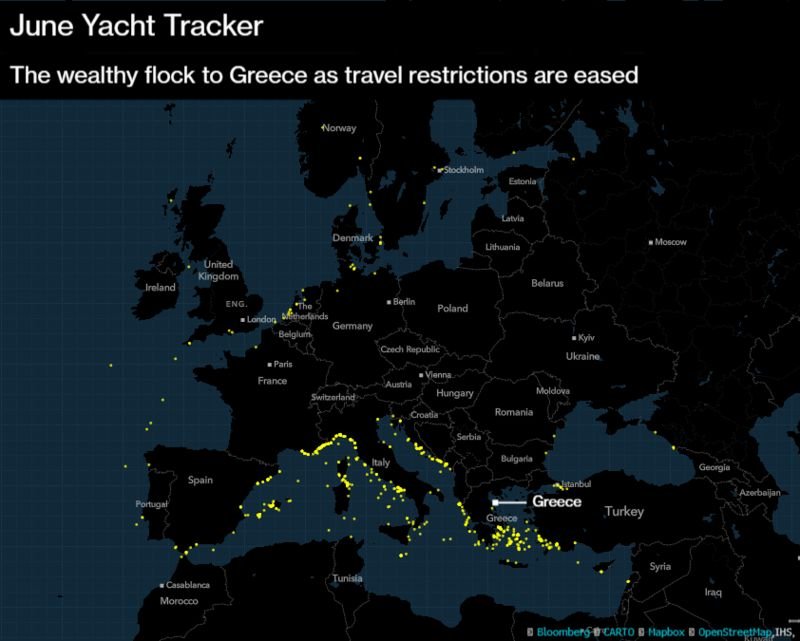 Komşu ülke, 25 Haziran itibariyle kıyılarına yanaşan en az 194 süper yatla ilk kez Bloomberg süper yat lider tablosunun zirvesinde yer aldı. Yunanistan’ı 171 yatla İtalya izlerken Türkiye kıyılarına yanaşan süper yat sayısı ise Haziran ayı itibariyle 49 oldu. ‘Süper yat’ kavramı, belirli bir ölçünün üzerindeki yatları tanımlamak için kullanılıyor.
