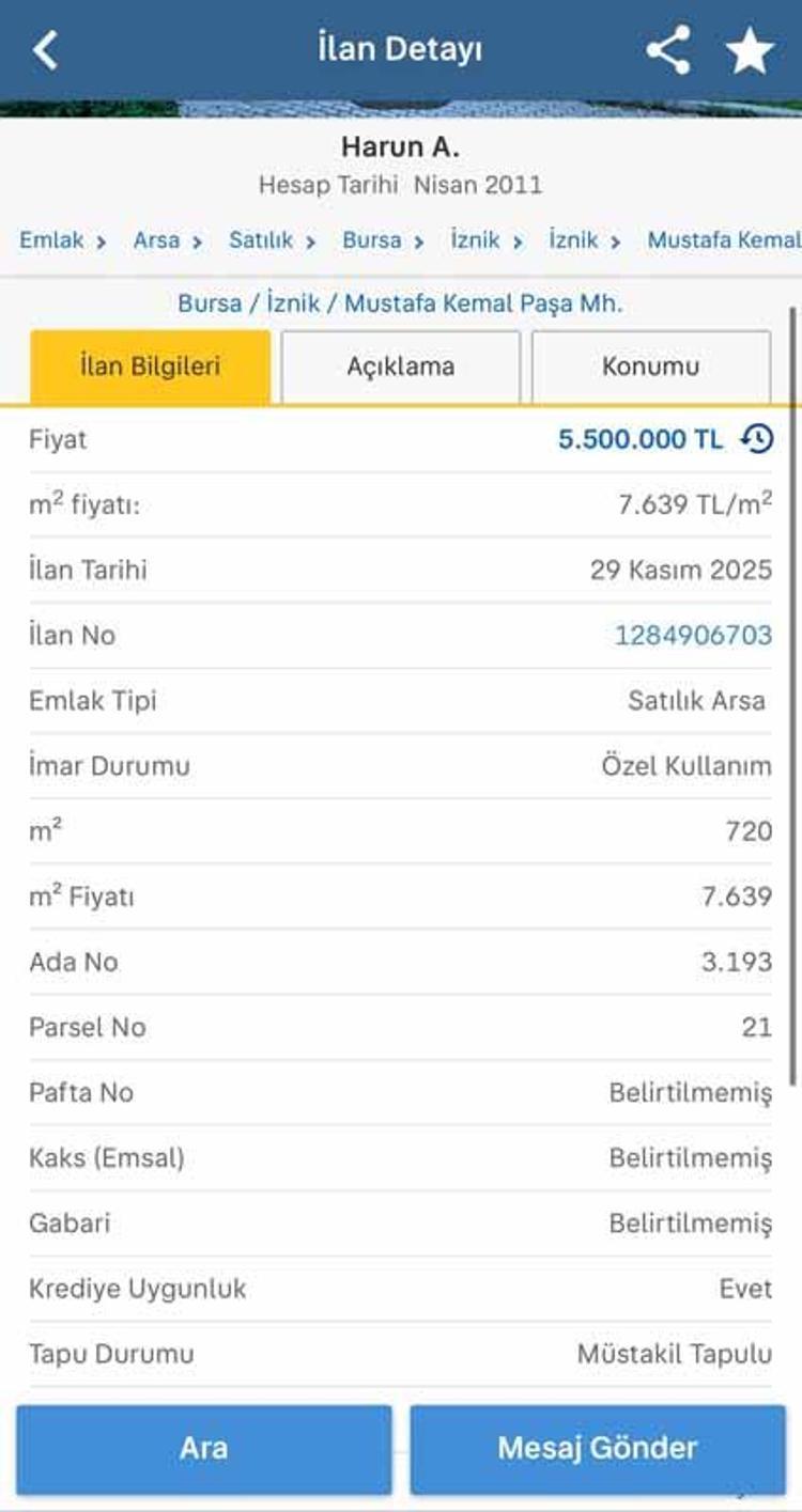 Bursa’da yaşayan inşaat mühendisi Kadircan Aslıvar, İznik Surları’nın 4 kapısından İstanbul Kapı ile tamamen yıkılan Göl Kapı’nın arasındaki sit alanında yer alan, ailesine ait özel parseli, Katoliklerin ruhani lideri ve Vatikan Devlet Başkanı Papa 14’üncü Leo’nun ilçeye ziyaretinden bir gün sonra internetten, 5 milyon 500 bin liraya satışa çıkardı.