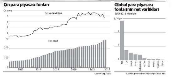 Para piyasası fonlarının son yıllarda Çin finansal sistemindeki rolü giderek artıyor. Ocak 2013’ten bu yana net varlıkların değeri sekiz kat artarak mart 2017 itibariyle 3.6 trilyon yuana (yaklaşık 522.2 milyar dolar) çıktı. Aynı dönem içinde banka mevduatlarının 1.6 kez artığı gözönüne alındığında para piyasaları fonlarının büyük bir hızla büyüdüğü daha iyi anlaşılıyor. 2015 yılından bu yana ülkede servet yönetim fonlarına ilginin artması ise para piyasaları fonlarındaki büyümenin biraz yavaşlamasına neden oldu.