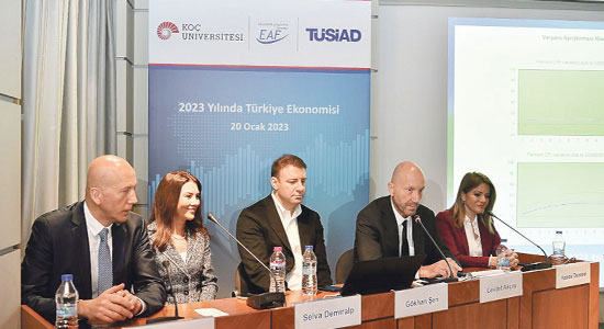Koç Üniversitesi ve TÜSİAD ortaklığı ile oluşturulan Ekonomik Araştırma Forumu (EAF) tarafından her yıl düzenlenen “2023 Yılında Türkiye Ekonomisi” semineri dün gerçekleştirildi. Etkinliğin açılış konuşmaları TÜSİAD Yönetim Kurulu Başkanı Orhan Turan ve TÜSİAD Yönetim Kurulu Başkan Yardımcısı ve Ekonomi ve Finans Yuvarlak Masa Başkanı Murat Özyeğin tarafından yapıldı. Seminerde, moderatörlüğünü Hande Demirel'in üstlendiği panel oturumunda; Cevdet Akçay, Gizem Öztok Altınsaç, Selva Demiralp, Hakan Kara ve Gökhan Şen konuşmacı olarak yer aldı. Özlem Ermiş Beyhan'ın Dünya'daki haberine göre, konuşmacılar enflasyon ve üretim konuları minvalinde para politikası üzerinde durdu.