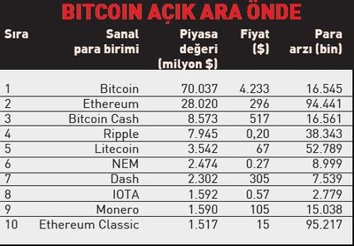 Bitcoin ile ünlenen sanal paralar (cryptocurrency) çok popüler çünkü çok hızlı bir değer artışı yaşandı ve '10 yıl önce 20 dolarlık bitcoin alsaydınız şimdi 1 milyon dolarınız vardı' konulu haberler çıktı. 1 Eylül'de 5 bin 13 dolar ile tüm zamanların en yüksek seviyesini gören Bitcoin fiyatı, bu seviyeden yüzde 20 gerilemiş olsa da hâlâ popüler. Aslında adları kamuoyu tarafından fazla bilinmeyen diğer sanal paralarda son günlerde ciddi hareketler var. Yıl sonunda piyasa değerleri 200 milyar doları bulması beklenen sanal paralar için devletler ardı ardına adım atıyor. Bankalar bir araya geliyor ve teknoloji devleri yatırım yapıyor.