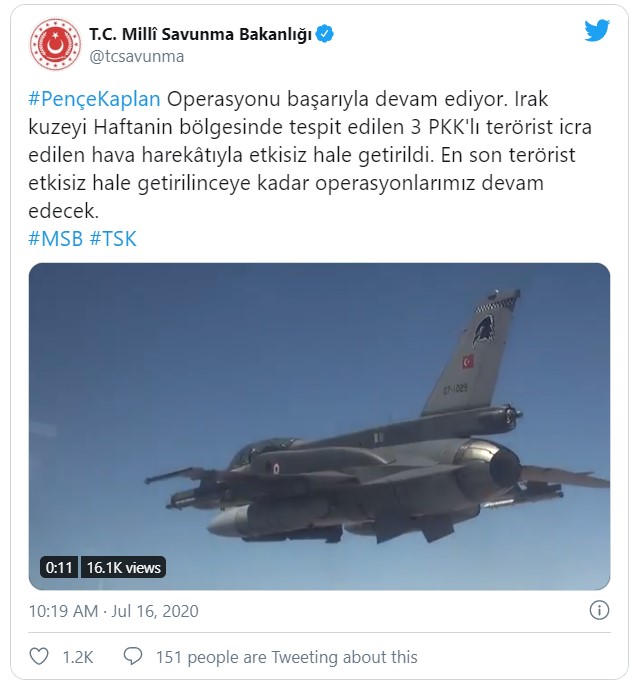 Hava harekatıyla teröristlerin etkisiz hale getirildiğine işaret edilen açıklamada, operasyonların en son terörist etkisiz hale getirilinceye kadar devam edeceği kaydedildi.