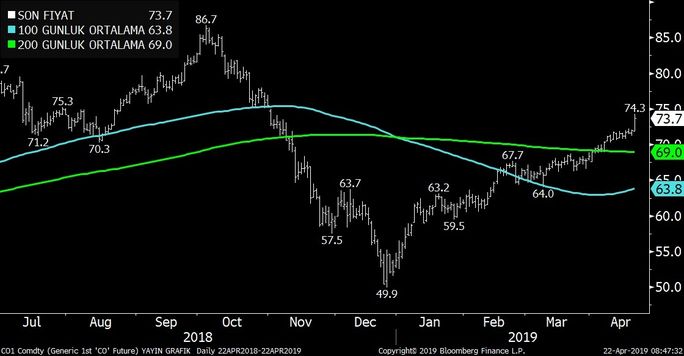 Vadeli petrol kontratları Londra'da yüzde 3.3 kadar yükselerek Kasım başından bu yana gün içi en yüksek seviyesine çıktı. Konu hakkında bilgiye sahip dört kaynağa göre, Dışişleri Bakanı Mike Pompeo Pazartesi günü, İran'dan petrol alımına ilişkim muafiyetin yenilenmeyeceği yönündeki kararı açıklayacak. ABD ayrıca, İran kararı sonrası piyasada doğabilecek açığı kapatmak için Suudi Arabistan ve Birleşik Arap Emirlikleri gibi diğer büyük petrol tedarikçilerinden gelecek taahhütleri de duyuracak.
