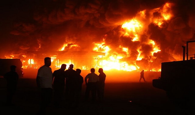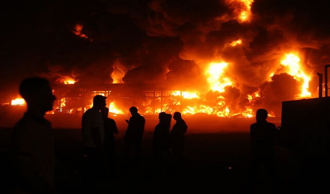 Yakıt dağıtım sistemleri ve zift deposunun da bulunduğu işletmeye çok sayıda itfaiye aracı sevk edildi.
