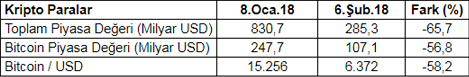 Rezerv paralarda büyük oynamalar olmamasına karşılık kripto paralar en fazla değer kaybeden araçlar konumunda bulunuyor. Aşağıdaki tabloda son bir ay içinde kripto para piyasasında ve bunların en büyüğü olan Bitcoin’de yaşanan gelişmeler yer alıyor.