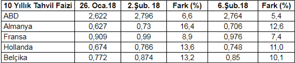 Fed’in bilanço küçültme operasyonu çerçevesinde parasal sıkılaştırmaya başlamış olması ve Trump’ın vergi indirimlerinin yaratacağı enflasyonist baskıya karşılık 3 veya 4 kez faiz artırımı yapabileceği beklentisinin egemen olması tahvil sahiplerinin ellerindeki düşük faizli tahvilleri satmalarına yol açtı. Bunun sonucu olarak da tahvil fiyatları düşerken tahvil faizleri arttı.