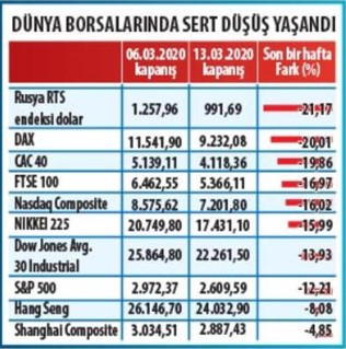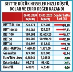 Dünyanın dört bir yanından finansal aktörler devreye girdi. Piyasalara likidite enjekte edildi. Borsalarda devre kesiciler çalıştırıldı. Yer yer hisse senedi piyasalarında işlemler durduruldu. Bütün varlıklarda satışlar sonrası tepki gelmesine rağmen hafta ekside kapandı.