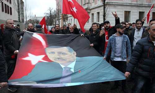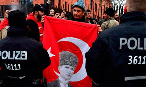 Zeytin Dalı Harekatı'na destek veren Türk vatandaşları bayrak ve Cumhurbaşkanı Recep Tayyip Erdoğan'ın posterini taşıdı. Gösteriler sırasında yoğun güvenlik önlemi alındı. Türkiye’nin Berlin Büyükelçiliğinin bulunduğu Tiergarten Caddesi 2 saat trafiğe kapatıldı.