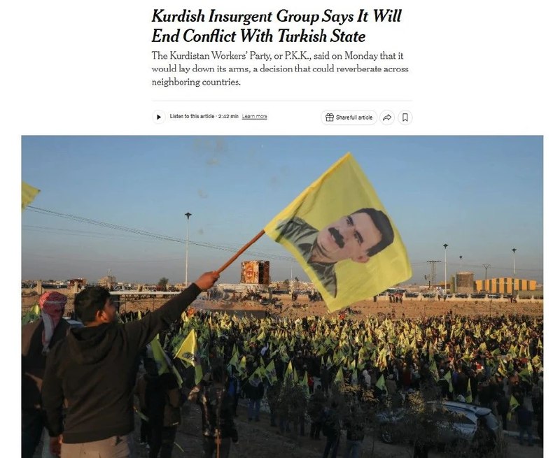 Amerika'nın saygın gazetelerinden New York Times ise "Kürt isyancı grup, Türk devletiyle çatışmayı sonlandıracağını açıkladı" diye başlık attığı haberde, bu kararın komşu ülkelerde de yankı uyandırabileceğini belirtti.
