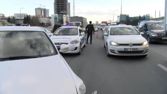 Plaka Tanıma Sistemi (PTS)'yle çalıntı olduğu belirlenen lüks araç, polisi alarma geçirdi. İçinde 3 kişinin bulunduğu araç, dün akşam saatlerinde Basın Ekspres yolunda fark edildi. Şüpheliler polisin 'dur' ihtarına uymadı. Ankara istikametine kaçan şüphelilerin arkasından polis havaya ateş açtı. Kovalamacayı fark eden bazı sürücüler yolu kesmeye çalıştı. Ancak şüpheliler bu araçlara çarparak yollarına devam etti. Şüpheliler, biri TIR, 7 araca çarptı. Kovalamaca İkitelli mevkiinde son buldu. Yolu kesen sürücüler nedeniyle daha fazla ilerleyemeyen 3 şüpheli, aracı terk ederek yaya olarak kaçmaya devam etti. Polis, şüphelilerden birini yakaladı. Diğer şüphelileri yakalamak için çalışmalar sürüyor.