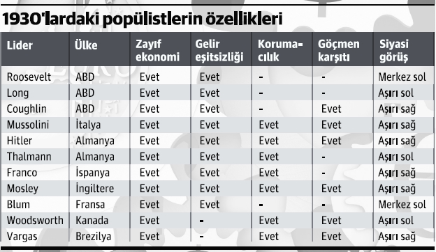 Populism zayıf ekonomiden büyük bir destek alıyor. İktidardaki partiye güvenin sarsılmasına neden olan ekonomik zayıflama, elit kesimin zenginleşirken sıradan vatandaşların ekonomik sıkıntıya düştüğü servet uçurumunun büyümesi, insanların gerekli gördüğü cesur adımların atılmasını engelleyecek politik kararların alınmasındaki hantallık, insanların farklı din ve etnik kökene sahip kişileri kendi toplumları için bir tehdit olarak görmesi populizmi besleyen nedenler. (Dünya / Evrim Küçük)
