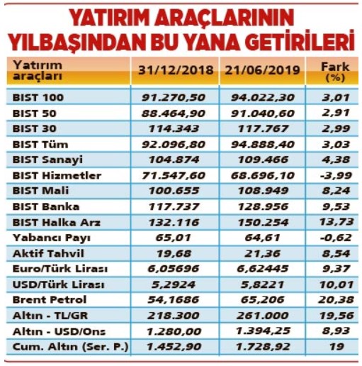Yatırım araçları içerisinde en fazla değer kazanan altın. Gram altın 261 seviyesinde bulunuyor. Yılbaşına göre değer artışı ise yüzde 19.56. Gösterge faiz yüzde 21.36 seviyesinde. Yılbaşına göre 8.54 puan yukarı çıktı. Getiriler arasında altın tüm yatırım araçlarını geride bırakırken belirsizlik noktasında güvenli limana yönelimin arttığı dikkatlerden kaçmıyor.