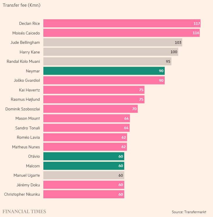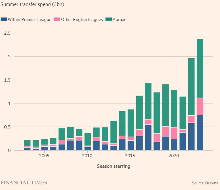 Premier Lig kulüpleri tarafından yapılan satışlardan elde edilen toplam ücret 550 milyon sterline ulaşarak bir önceki rekorun iki katından fazla oldu. Chelsea’nin Brighton’dan Moises Caicedo’yu ve Arsenal’in West Ham’dan Declan Rice’ı transfer etmesi de dahil olmak üzere bu yaz İngiltere’nin önde gelen kulüpleri arasında bir dizi önemli transfer anlaşması gerçekleşti. Her iki orta saha oyuncusu da 100 milyon sterlinden fazla bir bedelle transfer edildi.
