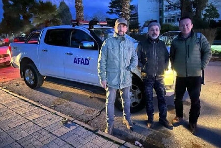 Dokuz Eylül Üniversitesi (DEÜ) Deprem Araştırma ve Uygulama Merkezi (DAUM) Müdürü ve Jeoloji Mühendisliği Bölümü Öğretim Üyesi Prof. Dr. Hasan Sözbilir afet bölgesinde, Afyon Kocatepe Üniversitesi Deprem Uygulama ve Araştırma Merkezi Müdürü Prof. Dr. Çağlar Özkaymak ve DEÜ-DAUM'dan Öğretim Görevlisi Dr. Özkan Cevdet Özdağ, Eskişehir Osmangazi Üniversitesi Öğretim Üyesi Prof. Dr. Volkan Karabacak ile incelemelerde bulunuyor.