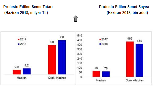 Türkiye Bankalar Birliği Risk Merkezi’nin paylaştığı verilere göre 2018 yılının ilk yarısında, protesto edilen toplam 434 bin adet senedin parasal tutarı 7 milyar TL oldu. Geçen yılın aynı dönemine göre protesto edilen senet adedi %6 oranında azalırken, senet tutarı %16 arttı.