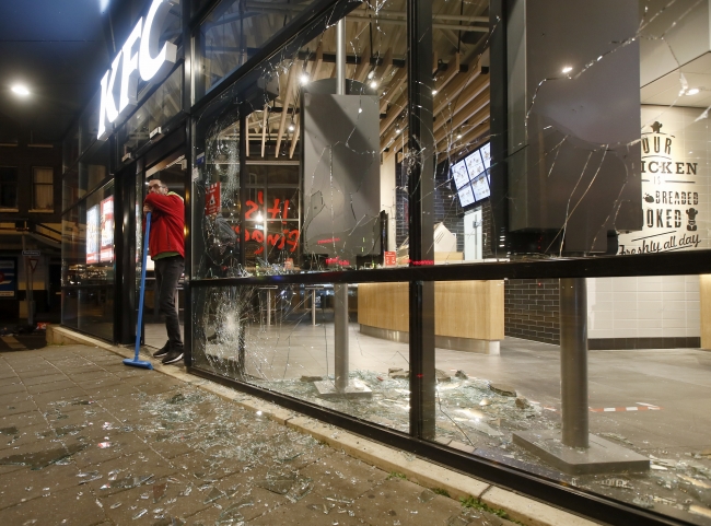Hollanda’da pandemi tedbirlerine karşı pazar gecesi 10 kente yayılan gösteriler dün gece de devam etti. Sokağa çıkış yasağına az bir süre kala kent merkezlerinde toplanan göstericilerin vitrin camlarını kırarak mağazalardaki malları yağmaladığı, ateş yaktığı ve otobüs duraklarına zarar verdiği öğrenildi. Hollanda polisi en az 151 göstericinin gözaltına alındığını açıklarken, vatandaşlardan ellerindeki video görüntülerini soruşturmalarda kullanılmak üzere paylaşmalarını istedi.