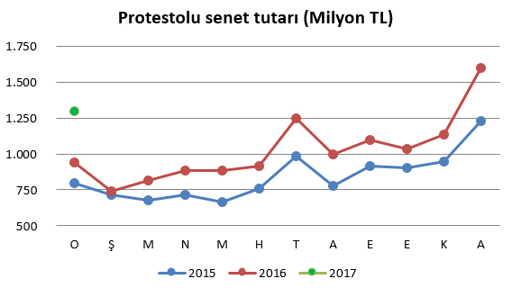 Oysa bu senetlerin tutarında belirgin bir artış var. 2015'in ocak ayında protesto edilen senetlerin tutarı 795 milyondu, geçen yılki tutar 942 milyonu buldu, bu yıl ise 1.3 milyara ulaşıldı.