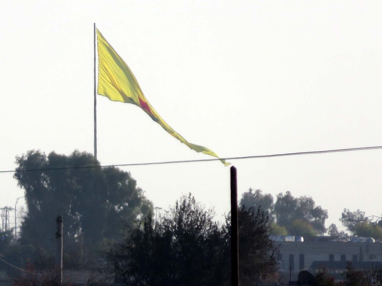 Akçakale’nin karşısında bulunan ve geçen yıl Haziran ayından itibaren PYD denetimine geçen Telabyad, sınırına güvenlik amacıyla modüler beton duvar örülmesi için başlatılan çalışmalar devam ediyor. İş makinelerinin çalışma yaptığı bölgede PYD üyeleri, dün akşam saatlerinde sınıra yakın bir noktada yer alan ve Akçakale’den görülen direğe terör örgütünün silahlı kanadı YPG’yi simgeleyen büyük bir flama astı. Terör örgütü üyelerince asılan yeni bayrak Akçakale’den net şekilde görülürken, sınır hattında iş makineleri ise zırhlı araçların aldığı güvenlik önlemleri arasında beton örme çalışmalarını sürdürüyor.