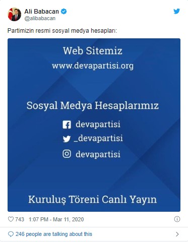 Babacan ayıca partinin resmi Twitter hesabını da paylaştı.