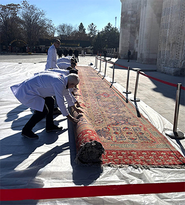 Türk halısı olduğu için gurur da duydum. İlk dokunduğumda ise 'Acaba hangi usta dokumuştu zamanında?' diye düşündüm. Türkiye'de dokunan güzel halımızın tekrar restore için bize gelmesi bizleri sevindirdi. Restorasyon çalışması sırasında bizler halımızın tarihi yapısına zarar vermemek adına çok özverili bir çalışma ortaya koyduk. İşçilik ve kalite açısından çok güzel bir halı ve oluk sistemi ile dokunmuş. Bu sistemde ilmekler birbirine çok yakın olduğu için bizi biraz zorladı. Halımızın Barış Sarayı'nda dünya barışına hizmet edeceği için çok mutluyuz.