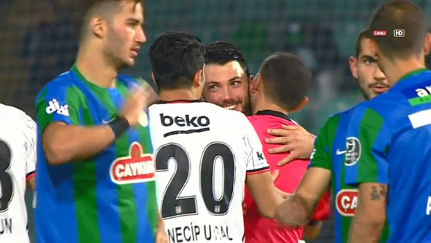 İlk yarının sonunda yaşanan pozisyon sonrası, Tolgay 2.yarının başında Cüneyt Çakır'ın yanına gelerek sarıldı.