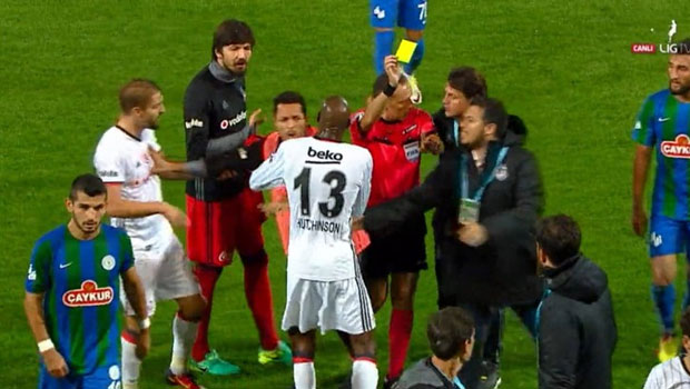 İlk devrenin bitimine kısa bir süre kala Rizesporlu rakibinin müdahalesiyle yerde kalan Tolgay Arslan faul düdüğü çalmayınca çılgına döndü.