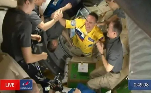 Dünya basınında “Rus kozmonotlar ISS'de Ukrayna bayrağının renklerini giyiyor” başlıkları yer alırken Rus kozmonot Sergey Korsakov, Oleg Artemyev ve Denis Matveyev, ISS’e ulaştıklarında bu konuda açıklama yapmadı.