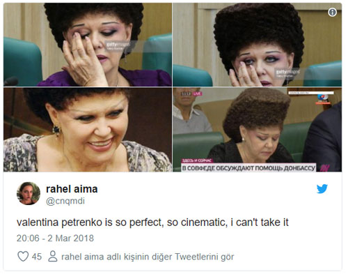 Rahel Aima da "Valentina Petrenko çok mükemmel, sinematik" mesajını paylaştı.