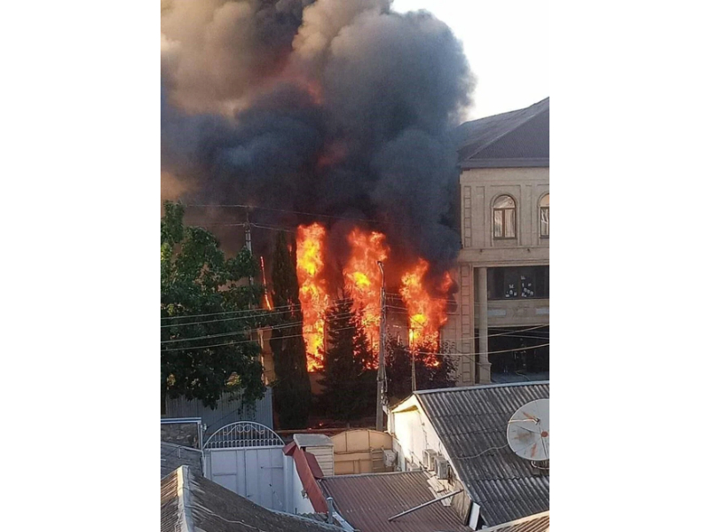Sosyal medyaya yansıyan görüntülerde Derbent’teki sinagogda yangın çıktığı görülüyor.