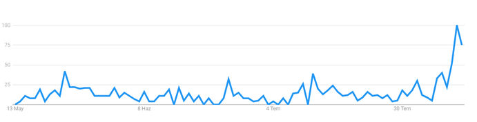 100 değeri, arama teriminin en yüksek popülerliğe sahip olduğu dönemi temsil ederken; 50 değeri, terimin bunun yarısı kadar popüler olduğu anlamına geliyor. 0 değeri ise bu terim için yeterince veri olmadığı, diğer bir deyişle kullanıcıların bu terim ile arama pek yapmadığı anlamına geliyor.