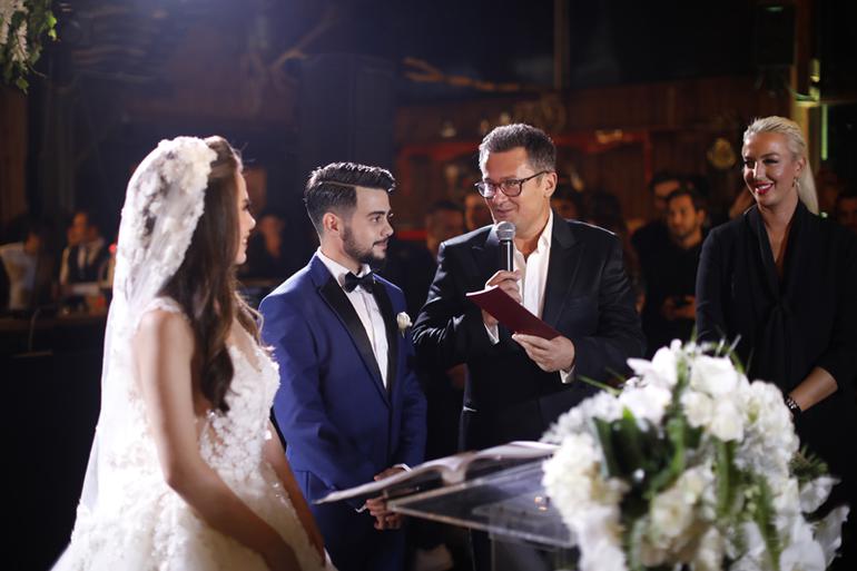 Sarıyer Bahçeköy'de şık bir düğün daveti veren çiftin nikah şahitliğini usta gazeteci Cengiz Semercioğlu ve gelinin arkadaşları Süheyla Dağıstanlı ve Sevda Taşçı yaptı. Gelinin nikah şahidi olması planlanan ünlü sanatçı Seren Serengil yağmurun azizliğine uğradı. Arabası yolda kalan Serengil düğüne yetişemedi. Üzüntüsü instagramdan paylaşan Serengil, yeni evli çifte mutluluklar diledi.