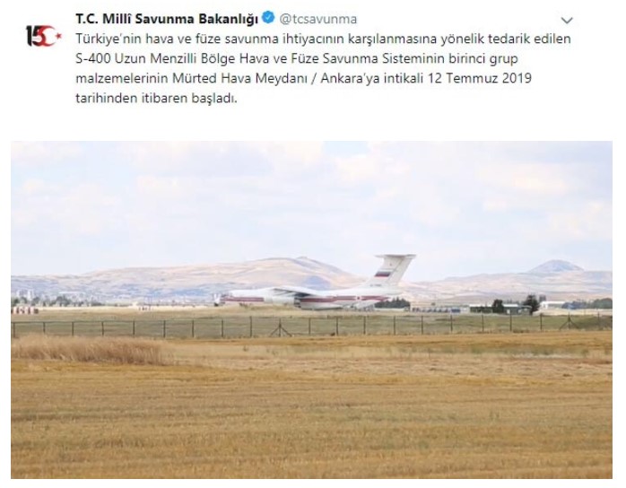 Açıklamada, "Sözleşme kapsamında S-400 Uzun Menzilli Bölge Hava ve Füze Savunma Sistemi'nin birinci grup malzemelerinin Mürted Hava Meydanı / Ankara’ya intikali 12 Temmuz 2019 tarihinden itibaren başlamıştır" ifadesine yer verildi.