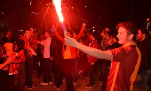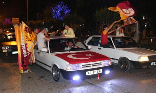 KAHRAMANMARAŞ- Galatasaray’ın Antalya’da oynanan karşılaşmada ezeli rakibi Fenerbahçe’yi 1-0’lık skorla yenerek Ziraat Türkiye Kupası’nın sahibi olmasıyla ellerinde Galatasaray bayraklarıyla Trabzon Bulvarı'nda toplanan taraftarlar, sevinç gösterisi yaptı. Meşalelerle yürüyüş yaparak, yolu araç trafiğine kapatmaya çalışan taraftarlara polisler engel oldu. Kalabalık taraftar grupları trafikte sevinç turları attı. Taraftar grupları bazı noktalarda trafiği kapatarak davul zurna eşliğinde kupa sevincini yöresel oyunlar oynayarak kutladı.