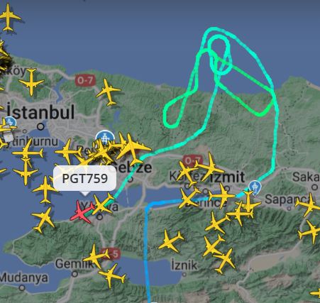 İstanbul'da olumsuz hava koşulları nedeniyle görüş mesafesinin düştüğü Sabiha Gökçen Havalimanı'na iniş için alçalan uçaklar pisti pas geçmek zorunda kalarak uzun süre havada tur attı.