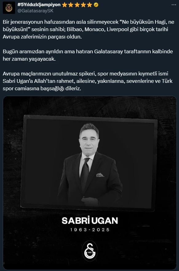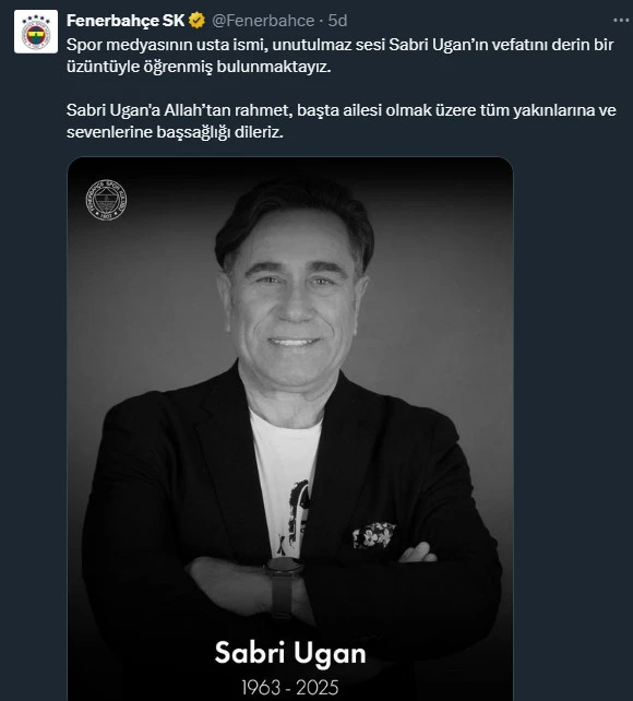Yıllar boyunca birçok spor karşılaşmasını sesiyle evlerimize taşıyan ve sporseverlerin hafızasında yer edinen Sabri Ugan’ın vefat haberi, spor camiasında büyük bir boşluk yarattı.