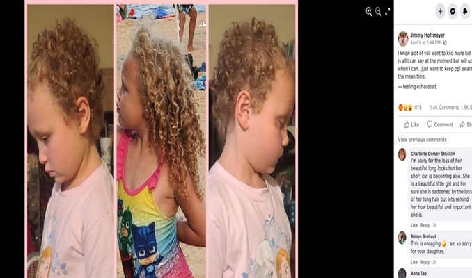 ABD'nin Michigan eyaletinde yaşayan Jimmy Hoffmeyer, geçen mart ayında okuldan eve dönen kızı Jurnee'nin saçının bir kısmının kesilmiş olduğunu fark etti.