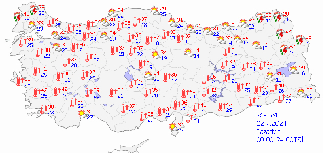 Özellikle yurdun kıyı kesimlerinde ve Güneydoğu Anadolu Bölgesi'nde sıcaklık değerleri 40 derece dolaylarında seyredecek.