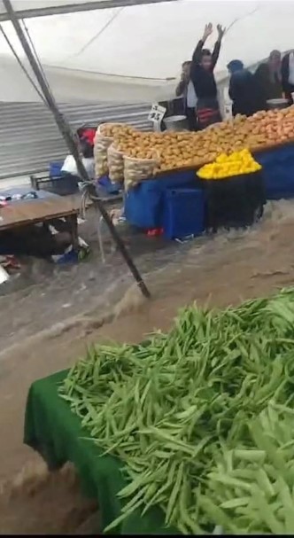 Avcılar Cihangir halk pazarını da yoğun yağış sonrası su bastı. Pazarda alışveriş yapan vatandaşlar, suyun içinde ilerlemeye çalıştı.