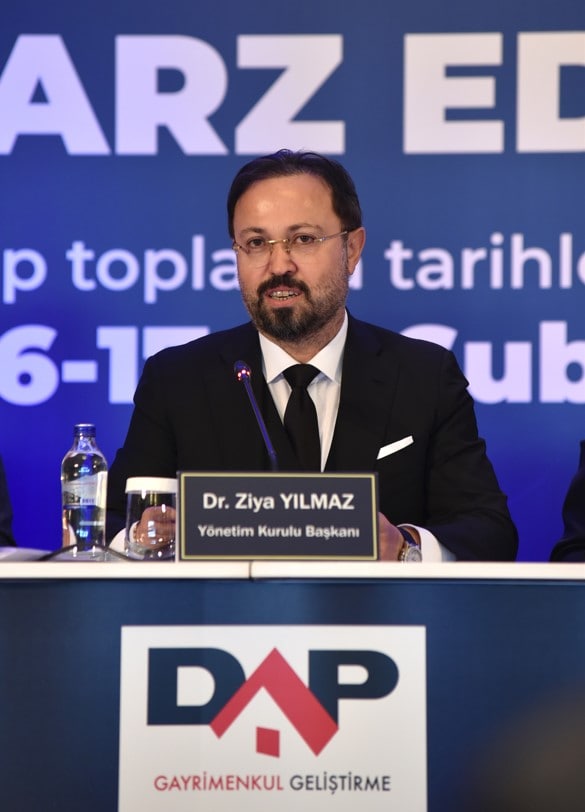 DAP Gayrimenkul’ün yüksek finansal yeterlilik ve güçlü bir sermaye yapısına sahip olduğuna vurgu yapan Ziya Yılmaz, “Altını çizmemiz gereken en önemli husus şu: Hali hazırda elindeki tüm projeleri bitirecek finansal güce ve güçlü nakit akışına sahip bir şirketi halka arz ediyoruz. Şeffaflığı ilk günden bu yana şirket anayasasına koymuş bir şirketiz. Tüm bu şeffaflık süreçlerimizin kamu otoritesince de tescillenmesini istedik. Bir anlamda da kendimizle de yarıştığımız için, DAP Gayrimenkul Geliştirme’ye halka açılma hedefi koyduk.” ifadelerini kullandı.