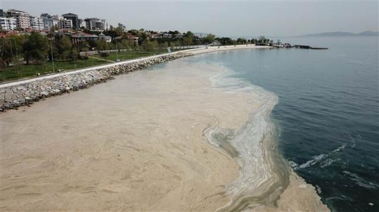 Marmara Denizi'nde son zamanlarda sıkça görülen deniz salyası Kadıköy Fenerbahçe Sahili'ni kapladı. Denizin üzerini saran tabaka sahilde bugün de etkili oldu. Kıyı şeridini kaplayan deniz salyalarının oluşturduğu kirlilik havadan da görüntülendi.