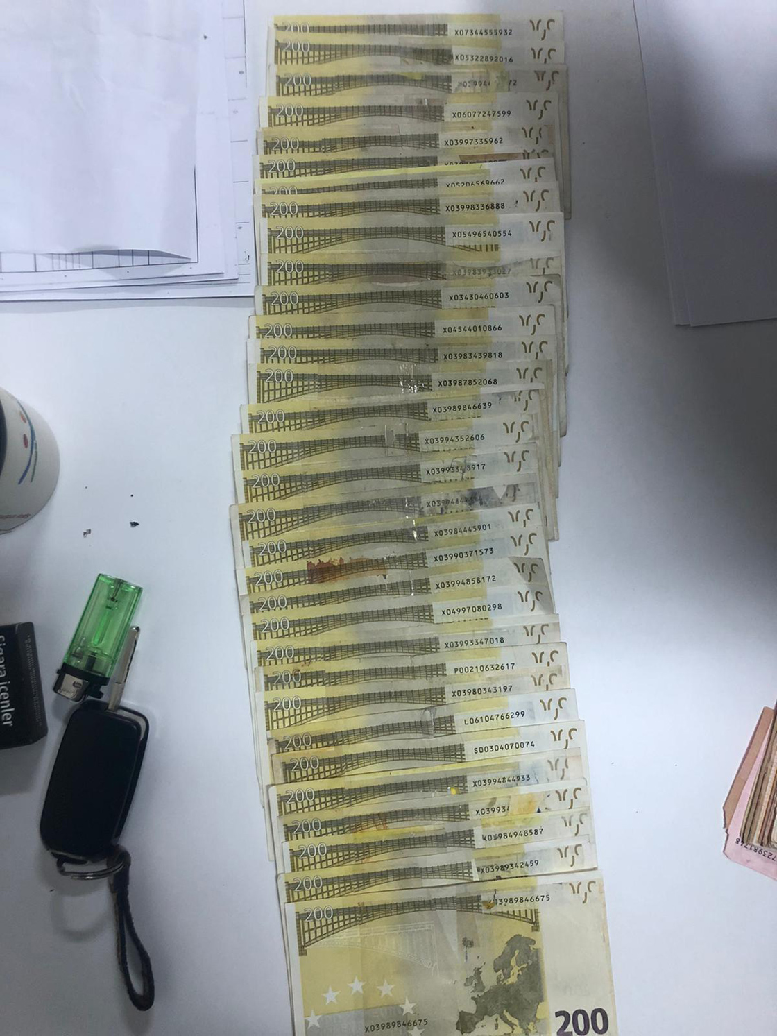 Olay yerinde yakalanan 2 şüphelinin yapılan üst aramasında, sahte 14 bin 300 avro ile sahte bin 500 dolar ve cep telefonu ele geçirildi.